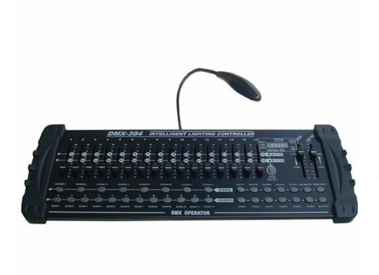 DMX512 / 1990 signal output; 384 control channels; 30 BANKS, each BANK has 8 programmable SCENES; 16 adjustable devices to adjust the output size; re-power can run the last Chase or Bank; built-inMIC head, to provide sound trigger; in the automatic trigger state, through the TAP SYNC key or SPEED potentiometer to determine the automatic trigger time; MIDI interface, MIDI signal can be controlled at any time; 4 digital display; BLACKOUT function can be manually or MIDI remote controlControl; CHASES programming and CHASES operation function, available manual or MIDI remote control; output delay function, with FADE TIME potentiometer to adjust the delay time ; DMX signal output connector: XLR-D3F; LED light bulb interface; power input: DC9V 1000mA; Dimensions: 520mm × 183mm × 73mm; Weight: 2.6kg